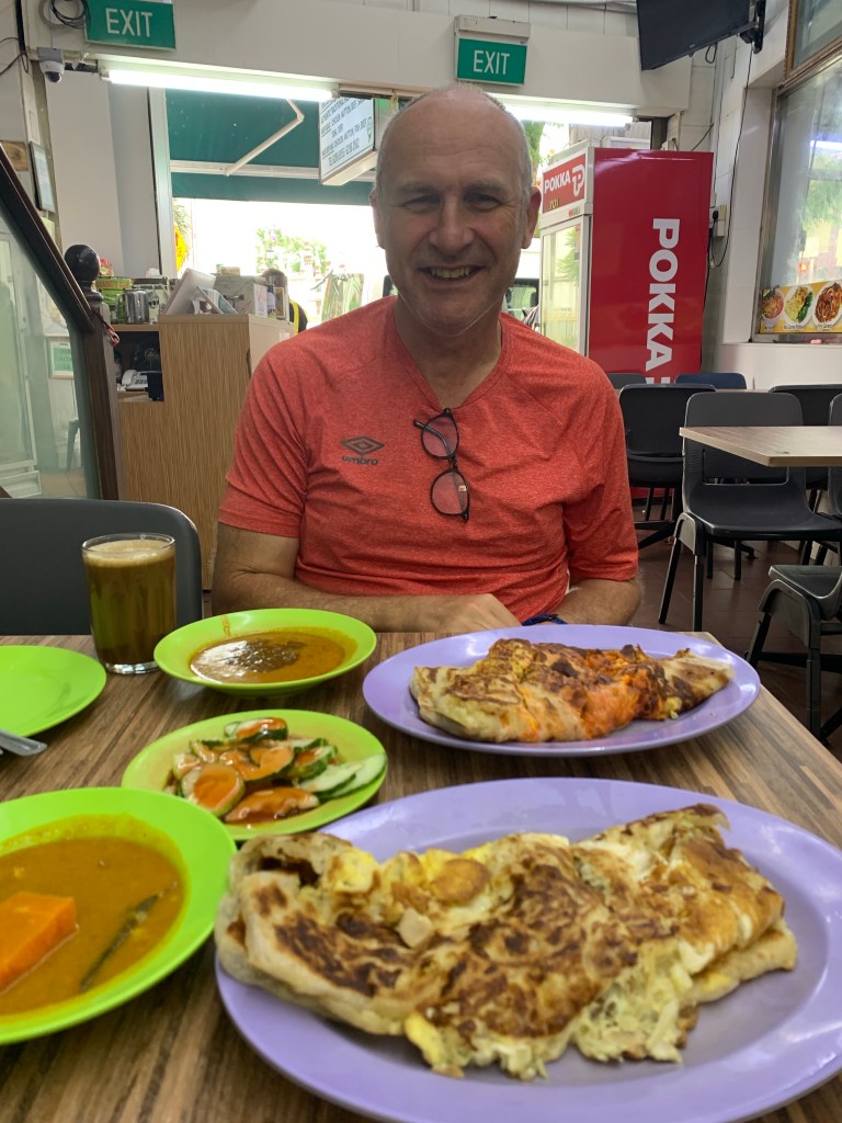 My wife had booked the Village Hotel Bugis which is near the Islamic segment. Singapore has two other segment; Little India and China town. The next morning, we wondered down to the street and found a Turkish street food outlet. Everyone speaks English here although it is a very Asian multicultural city. So the English accent here is Asian English. Like English is their second language. Anyway, the waiter sat us inside and asked us what we wanted, my first response was “Coffee” and then he pointed to the food picture board on the wall. “Yes, I’ll have the Mutton Murtabak.” I said. I can really get into these Roti style breakfasts. $19au for what you see in the photo. Also see the video on how to make.