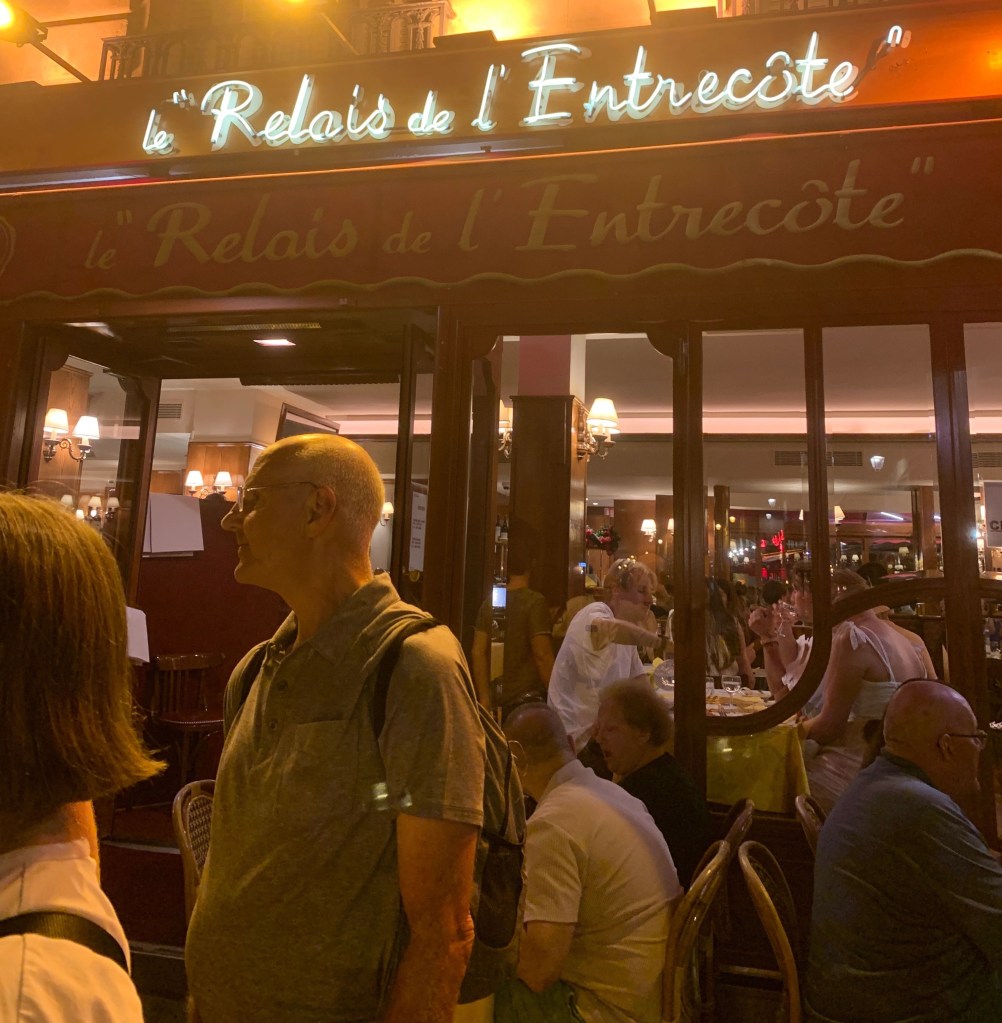 There are Cafes everywhere pick one and perhaps they are all good. Although we remembered from last time that when you sit down at a cafe order straight away, otherwise they leave you waiting. There was one restaurant that had me baffled. Apparently it’s a chain, Le Relais de I Entrecôte (photo) it serves four items; blue, rare, medium, and well done steaks with fries. Although the desert menu had a little more. It was Little E’s birthday My neice’s mother in law and of course we get the birthday song in French. The steak was nice the fries were ordinary and the green sauce tasted like Laksa. For this meal you had to lineup around the block. Wow!