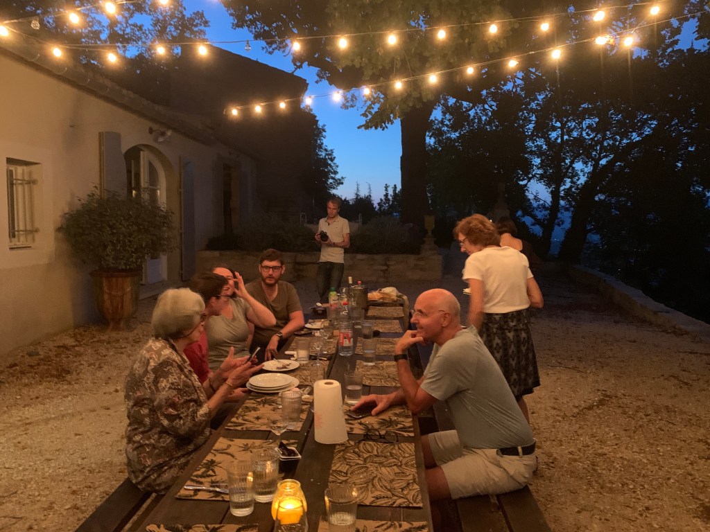 The rugby World Cup is currently being staged in France and there are a few matches being played in Marseille, 30 minutes down the road from Avignon. No tickets were available so we were unlikely to attend. The Ouigo very fast train from Paris to Marseille was full since there were games being played that day and the next. There were some Scotts on the train so we had a chat. Their match against South Africa was the next day. We got off at Avignon and rented a car to drive to the house. Driving on the other side of the road is challenging, more so in car parks than on the road. At least the road directs you more. We had trouble with the navigation in the MG. My first attempt had us drive into a lane way and to someone’s property so, my wife took over and got us on the right path. The house has 7 bedrooms with an ensuite for each. The kitchen is huge willing to cater for our group. The villa is positioned on the side of the hill and so much so that the third story you can walk off the balcony to the uphill. To make things perfect, it was mostly sunny and above 30 degrees C, as mentioned, the house has a lane pool and the water was refreshing. It has an upper pool which fills up with the hillside seeping and flows through a spout into Fountain. It continuously flows all year round. Apt is one of these towns/valleys that’s in the postcard. The roads are single lane and every so often there’s a turn out lane to allow the opposite car to pass. It reminded me of the Isle of Skye in Scotland which I visited many years ago. They drive on the right so a little confusing at times for us Aussies. Yes, I did start driving on the left at times but was reminded by the up coming vehicle. Geezus! There’s so much more to write, anyway next post.