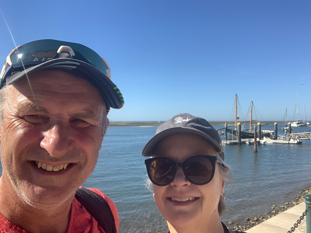 Olhão is a coastal town in the southern point of Portugal. The streets are narrow in the old part where every building has similar features. It’s easy to get lost if trying to find a restaurant which you’ve seen before. There are daily markets selling produce and fish. They had to separate the fish vendors from the rest due to the odor and you can smell why when you enter the depot. Our mission today was to ferry out to Culatra Island, a barrier land mass which protects the local towns from the strong currents of the Atlantic Ocean. Once arrived, It was a beach day. With bathers and towels in hand, we trek over an elevated boardwalk to the Atlantic side of the island. Waiting for us was a line of structurally sound umbrellas and two layout chairs. All for 10€ for the day. Our group took up the chairs and lounged for the day. With beautiful weather and a calm ocean, I was able to dip into the Atlantic Ocean for the first time in 42 years. This being a Cape Cod trip I did at 15. The water temp back then must have been about 16 “unpleasant” but today it’s about 20. A nice dip.