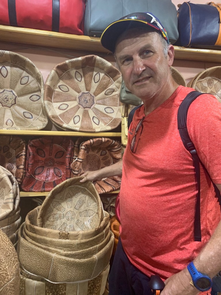 As we entered the Medina, the pestering sellers were mostly the same, but the inner district has a charm, narrow walkways, cobble stone paths and beige tinted walls. Our local tour guide took us through a pre planned route explaining the history. Although, I was suspicious about the intent of the tour since he took us through the tannery, pottery and weaving making areas and somehow ending up at their shop where the vendors were ready for you and not taking no for an answer. Perhaps I’m being a little too cynical but i didn’t go on the tour to bye anything. My fun was to hand out the change to the people in need and not the slave drivers. We walked around the Medina for four hours and only saw a small portion of the town. This place was huge but I suspect much was the same everywhere else.