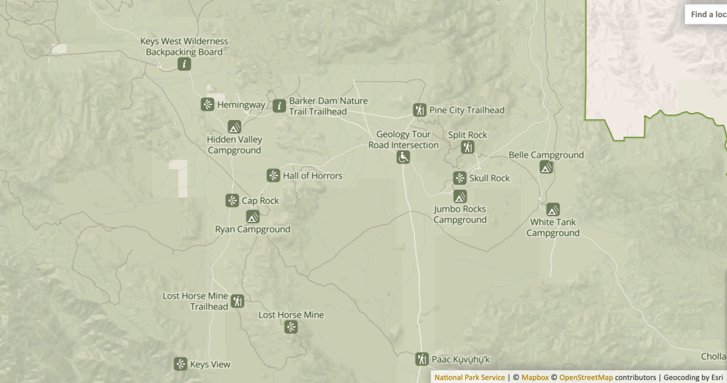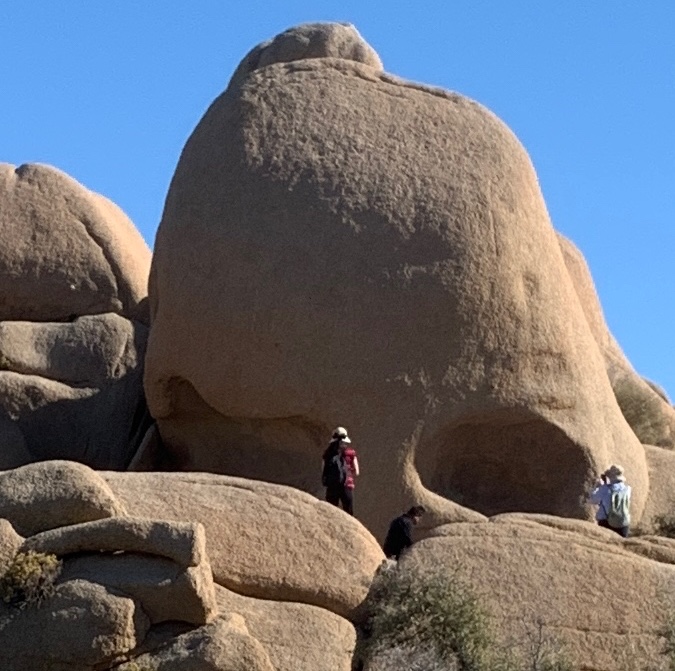 At the drive-up gate, the cost for admission is $30 per car and when my sister flashed her AAA card for a discount, the attendant asked for her age. She was 62. The cashier fussed about for a few minutes in which I was thinking Why is she taking so long? She came back with a front window parking slip and an Annual national park pass for my sister. Apparently, for all the 62 years olds and over, you can get an annual pass for $20 to be used for any National Park in the US. Bonus! The AAA Card wasnt needed. Your first impression of the park is that it’s mountainous and is bare of large trees although the landscape is covered with small palm type trees known as Joshua Trees.