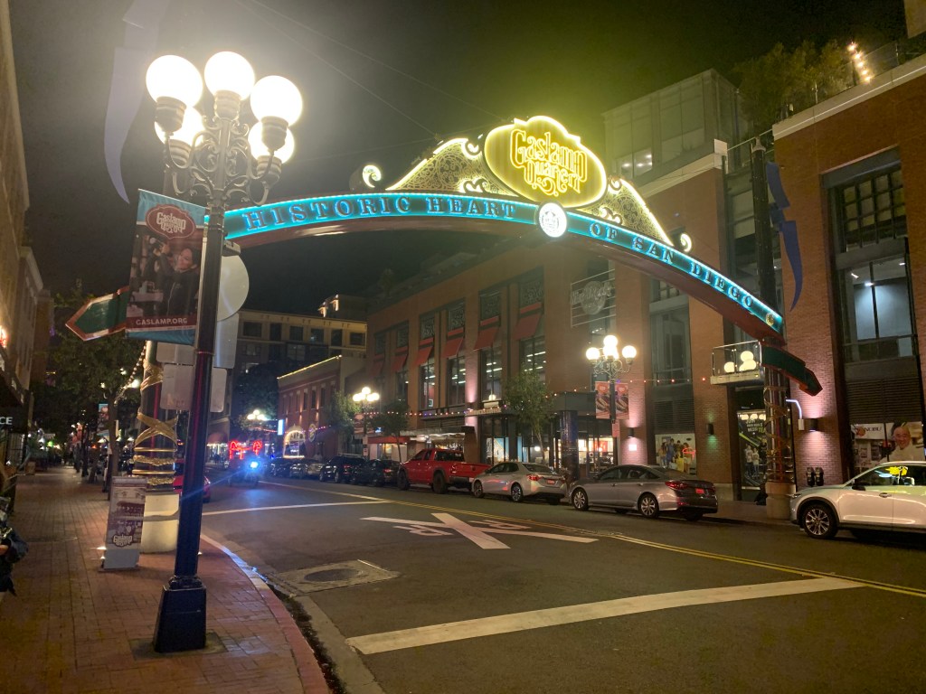Later, we checked into the Horton Grand Hotel downtown in the Gaslamp district. The populas of San Diego was originally located in Old Town. However, in 1867, Alonzo Horton, the father of downtown, purchased several hundred acres of waterfront property (@27.5 cents per acre). This became a new town since the old town (established by the Royal Presidio) was far from the bay and for the town to thrive, it needed the San Diego Bay access. Although, from my perspective, the town has a flaw. After going for a walk after dinner (Las Hadas Bar & Grill), we ventured towards the bay only to be challenged by the railway and the National Convention Centre. We needed to wait for the very active train crossing as well as climb the 100 steps to walk over the convention centre to see the ocean. The locals took the 100-step challenge as a daily workout. It was continuously being used by people to run up and down. The bay was full of yachts and some very expensive-looking ones as well. It was dark so the bay lit up like a Christmas tree. Very nice!
