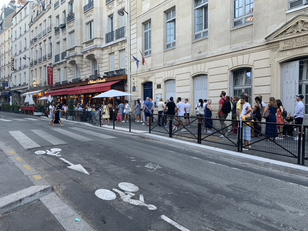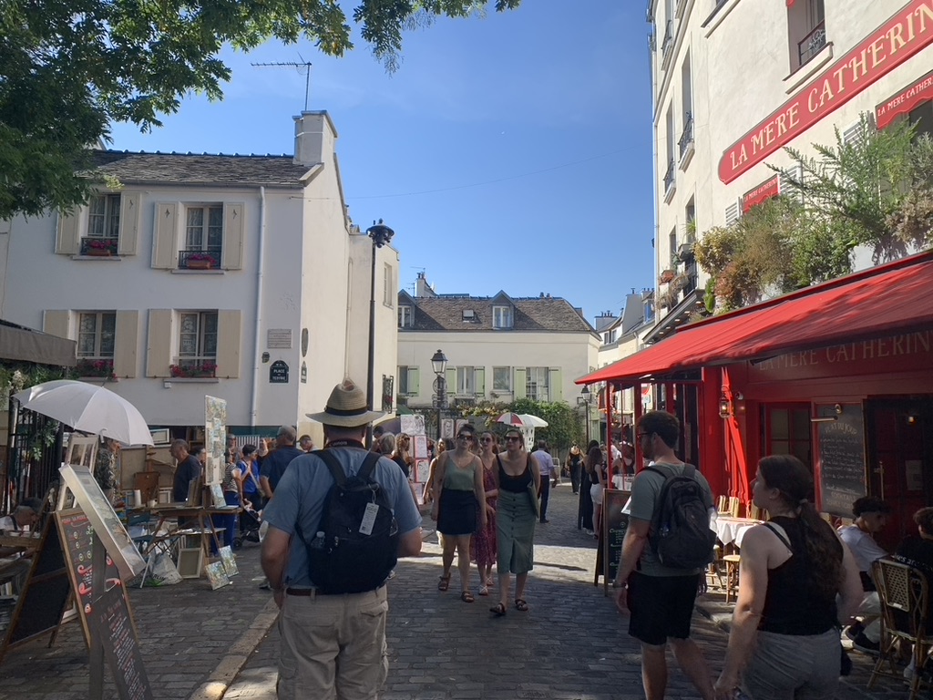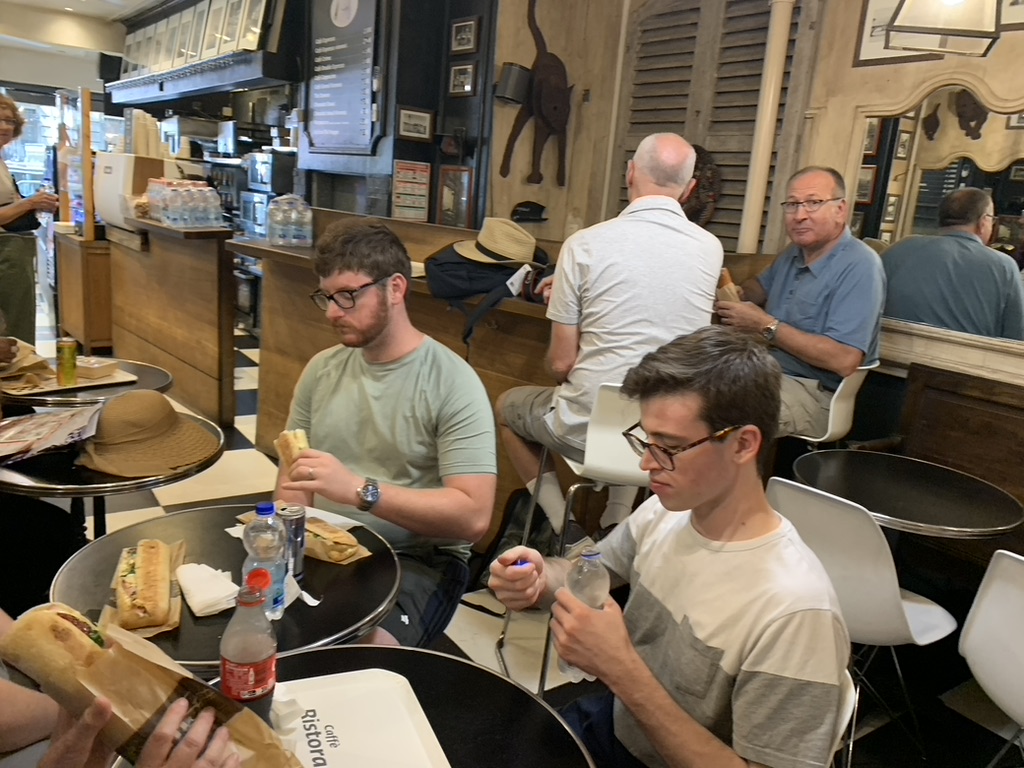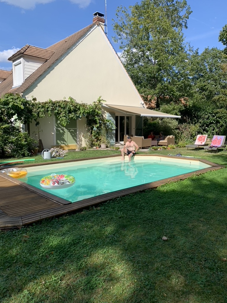 Heading to Paris from Brussels on the train. Plenty of stops and train swaps. Mmm! I’m hungry.My wife reaches into her bag and produced the goods. 2/10Arriving in Paris meeting my sister’s family of seven, we decided to walk down the Rue De La Harpe cafe district from the hotel. We got stuck into this “Which restaurant should we stop at?” I said “This one!”Yea! This is what I wanted. 10/10The next morning, we were off up the road to the nearest cafe. Do I need to show the coffee and croissant. 6/10Too many family members to coordinate for the day. The family ate at this cafe. I guess not inspired.Well, I ate at the Goiko burger place next door to the hotel. I love burgers. 9/10Another night in Paris heading down the Rue De La Harpe cafe district, this time for CrepesChez Suzette Crepes 3/10Any place that has a lineup like this, you got go there. (Le Relais de l’ Entrecote’)Interesting Walnut and Lettuce salad, not inspired 1/10One item on the menu, steak and chips with the green sauce. I suspect that the sauce had coriander in it. The variation is either rare, medium rare, medium or cooked. 4/10The wine was good. 6/10Brownie, Vanilla Glace, raspberries and an espresso. 7/10Perhaps the lineup was for the desert, strawberries on a lemon biscuit. 8/10I guess the rellies do come in handy, relaxing by the pool at my brother in-law’s brother’s (Paul) house in Jouy-en-Josas, France.Yes! A true French meal, and the baguettes were lurking on the dinner table. 8/10The exotic way of cutting cheese for the baguettes. 9/10