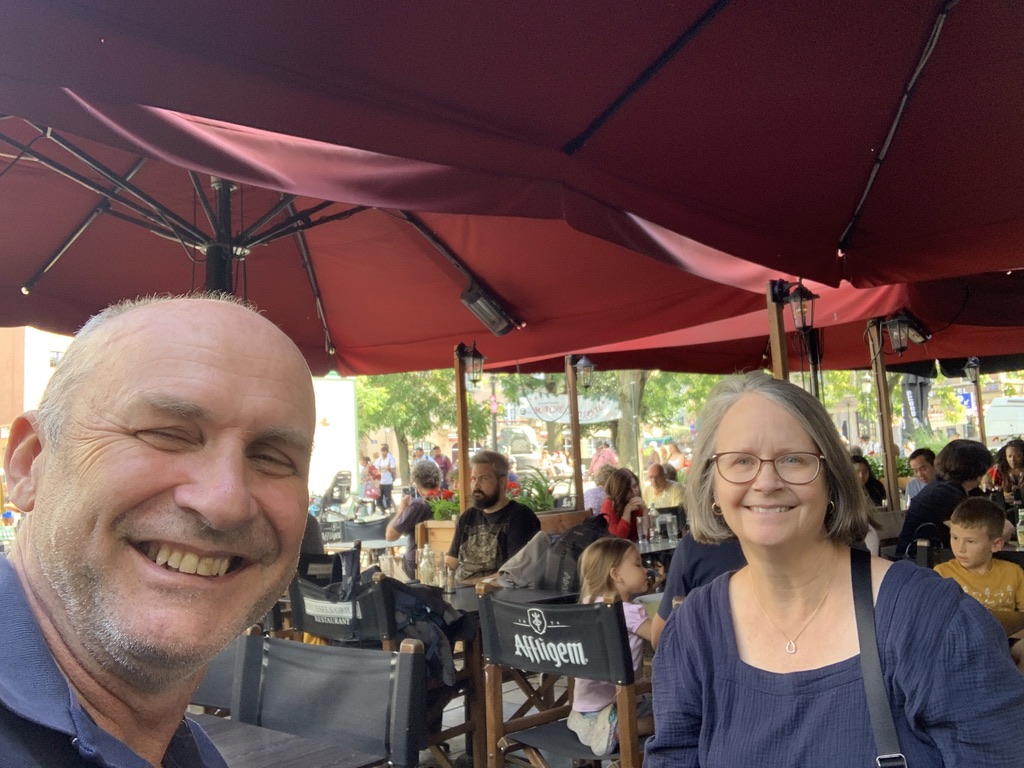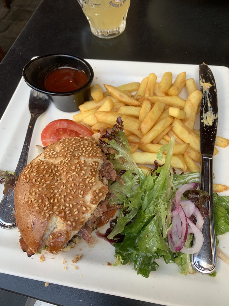 Landing at the Brussel airport, the Turkish airlines provides a visual of our approach.Finding a Brussels cafe was easy, it was deciding whether to stop for a burger or Belgium chocolate.Ok! Typical plate of burger and fries. 7/10We did both. 6/10With only a day and half in Brussels, we could just see Jons cafe from our accommodation window. Guess where we ended up? 5/10