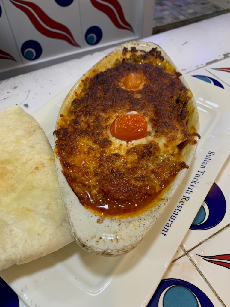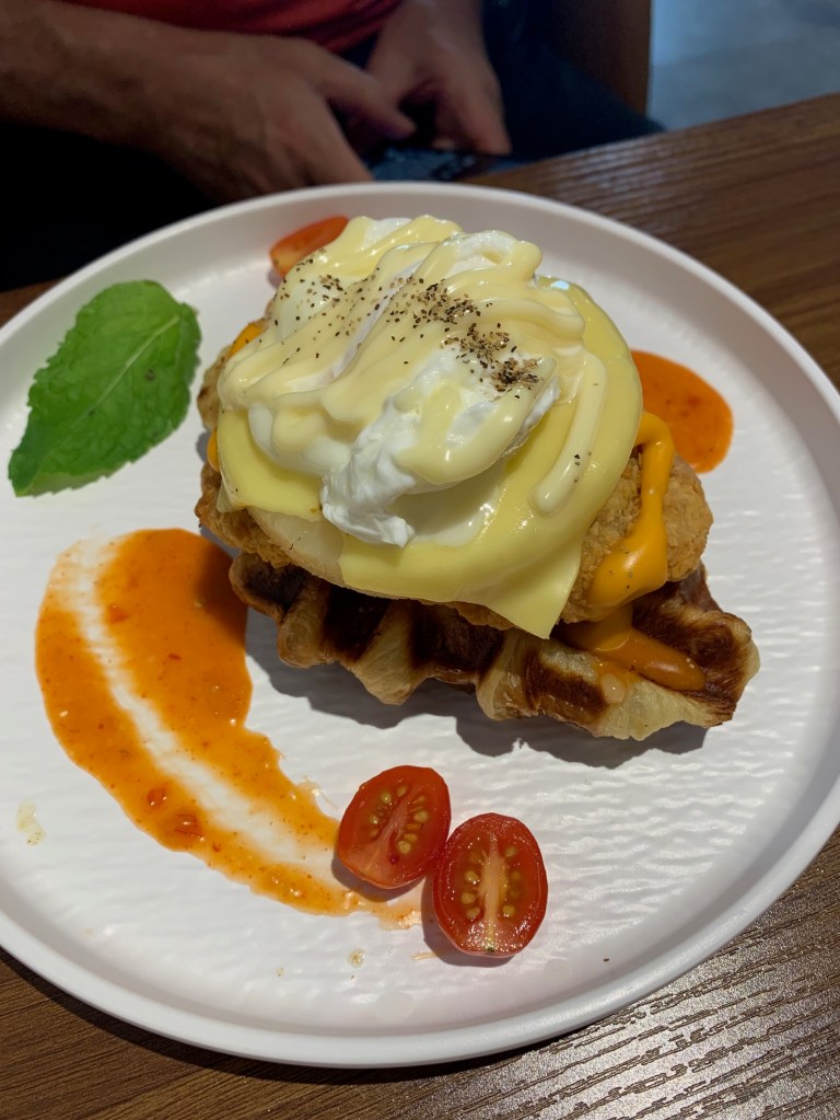 Flying from Darwin to Singapore. Excited!Jumping across the Timor sea, we landed in Singapore. Venturing near the Sultan Mosque for breakfast. The Zam Zam Restaurant provided us with a Lamb Murtabak and a turkish coffee. A simple dish of eggs, potatoes and cheese, A little bit of currie on the side. 9/10Walking through the Muslim district and being spruikered by lots, we finally sat at the Sultan. With every Turkish meal comes a greek salad and loads of Feta. 6/10The classic Lamb Pide 5/10An eggplant bake 6/10Late in the afternoon, we were both tired and still on the hop on and hop off bus. We spotted this coffee shop in the Chinese district. Quite funky. The shop produced a Croissant and a waffle, they call it a Croiffle. ie A Croiffle hollandaise. 7/10