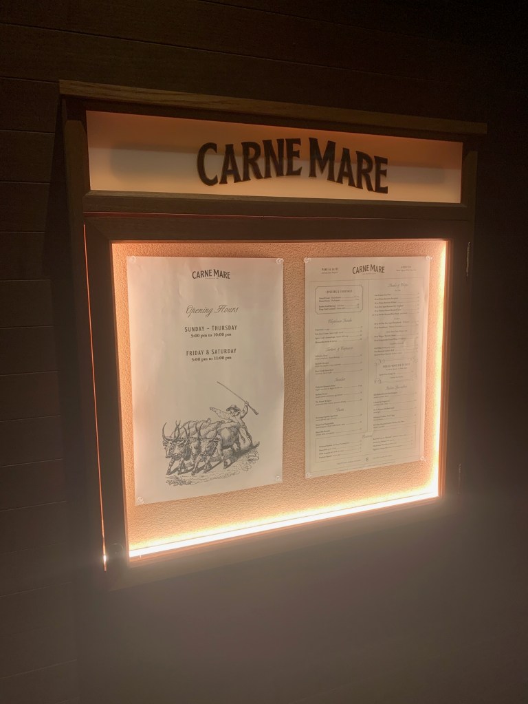The Carne Mare is a very stylish restaurant with a waiter for every type of food.