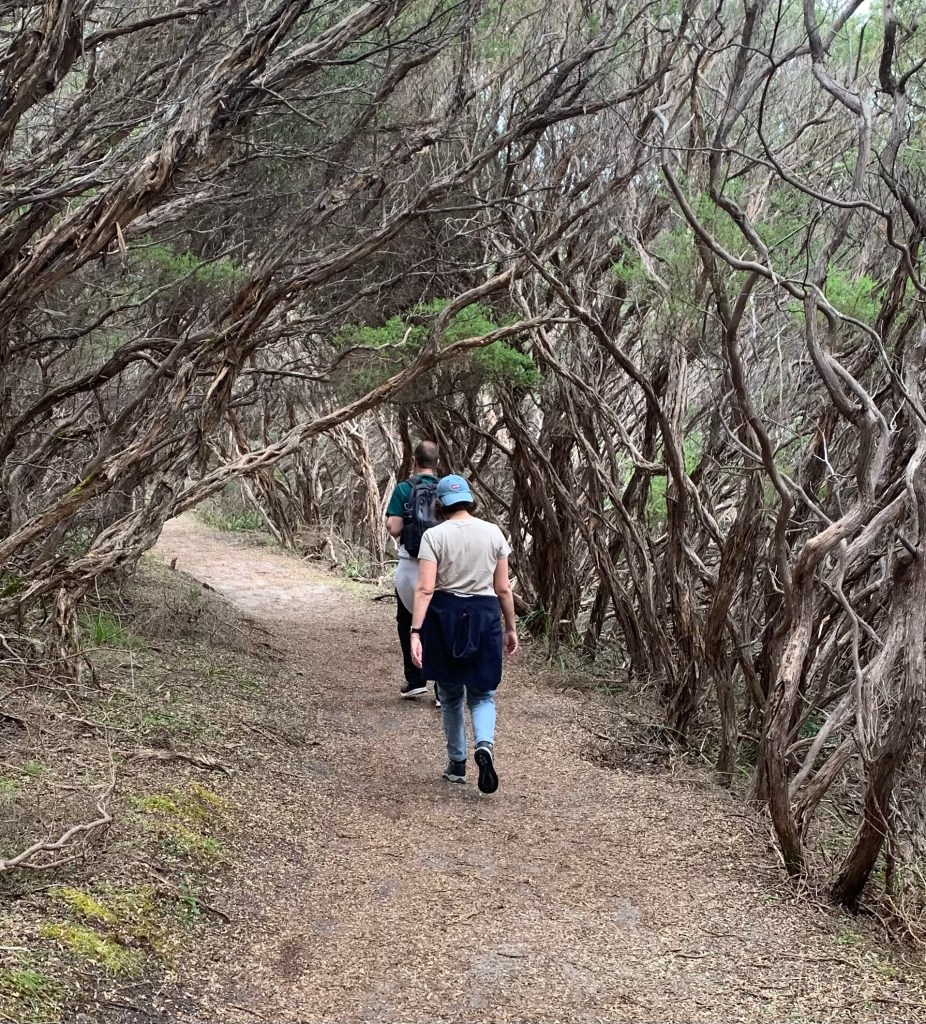 Anyway, the pleasant, cultured path tracked up to the headland and down the other side. It appeared very popular, with many sightseeing tourists making the journey. The 15-degree windy day didn’t derail the views from Pillar Point. Nesting down from the wind and admiring the Prom’s coasts, we replenished with a satisfying ripe banana.