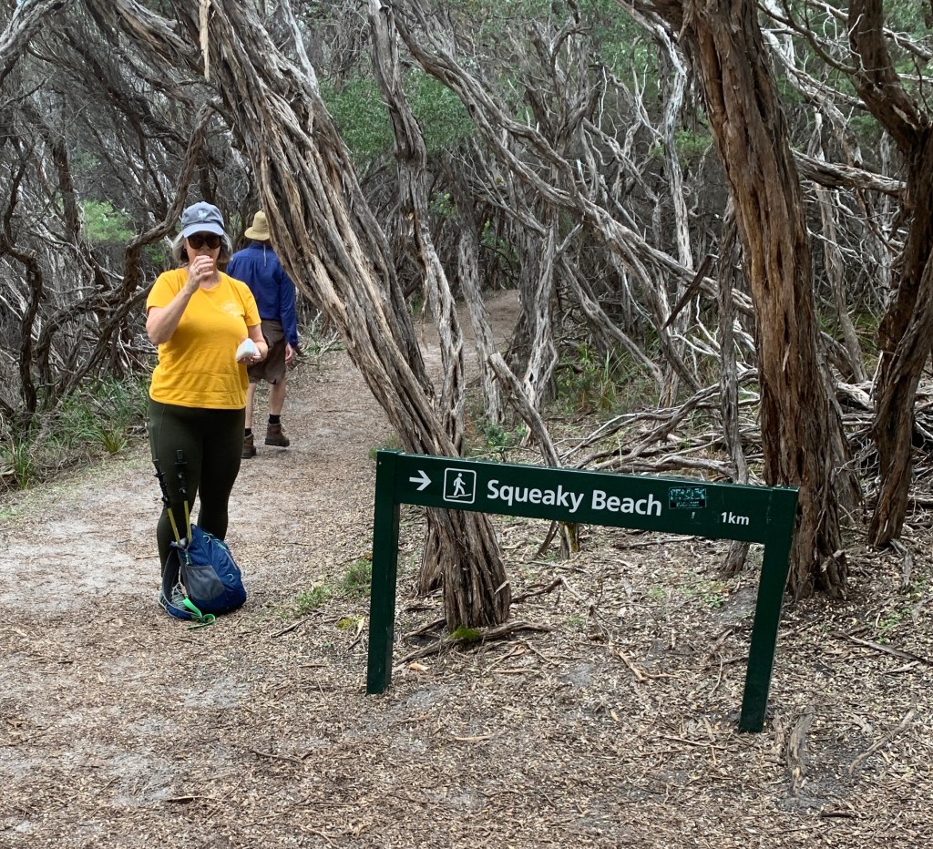 However, we weren’t alone, with a group of chatty ladies beside us that appeared to be perched down on the rocks, ready to camp for the afternoon. We retreated the way we came and tracked back to the track to the squeaky sands, or so we thought.