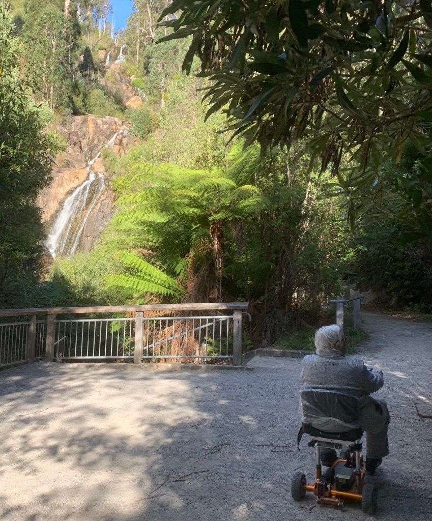 Sitting across the table from me, my mother laughed at the story. So many years ago, I had so many questions, but I left it at that. Next, we drove up to Steavenson Falls, where our portable electric scooter took her to the base of the falls. The 89-year-old is mobility restricted to that. She sat on the platform, listening to the soothing water pass by into the pool at the base. She turns to me and says,” I would like my ashes placed here.” There you have it, one of lifes prevaledges She captures a connection to that time, so long ago, where she could have perished, allowing the forest to claim a victim, to settle a score and letting her spirit to roam the bushland high in the mountains, not far from the city where she was born.